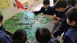 玉東町の立体地図や稲刈り等に使っていた道具、西南戦争で使われた銃弾など興味深そうに見学していました。玉東町のことをよく知り、もっとこの町を好きになってほしいですね。