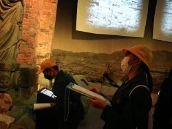 まずは城山小学校を見学しました。ここは爆心地帯の中で最も爆心地に近い国民学校で、建物および人員の損傷率がきわめて髙かった場所です。このため原爆被害の代表的な箇所の1つとなっています。子供たちは一生懸命ガイドさんの話や現地の様子をメモにとっていました。