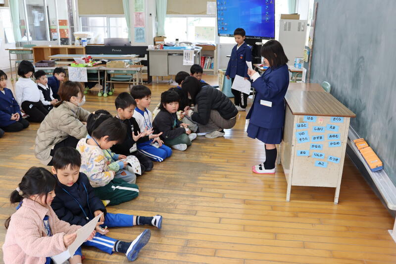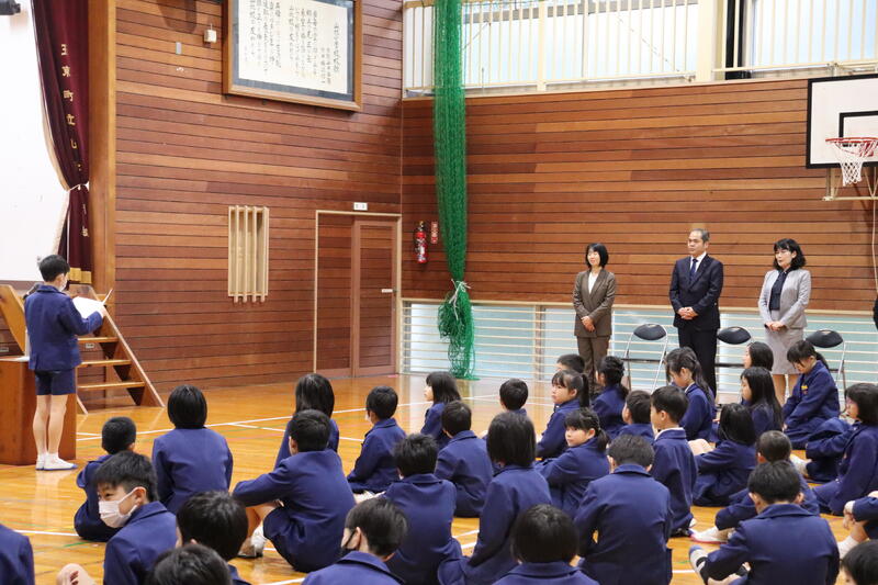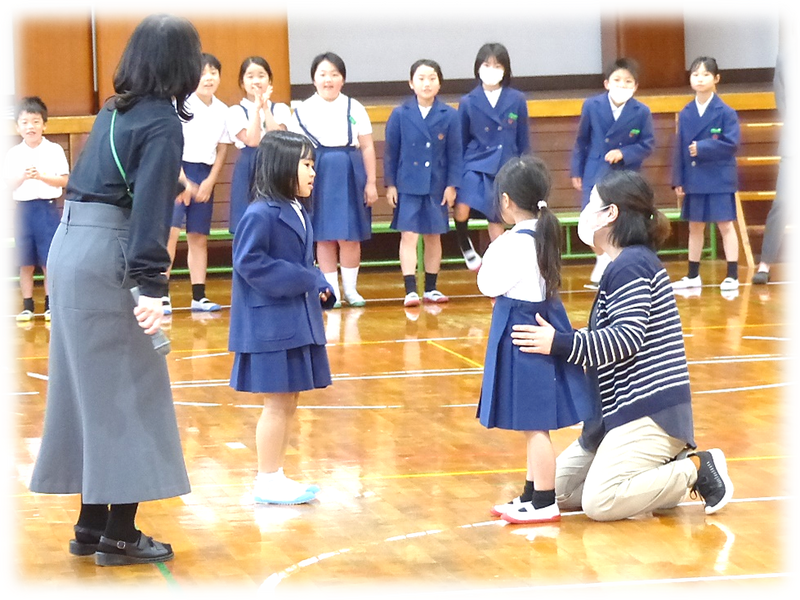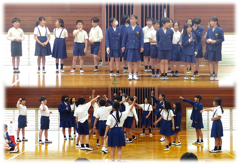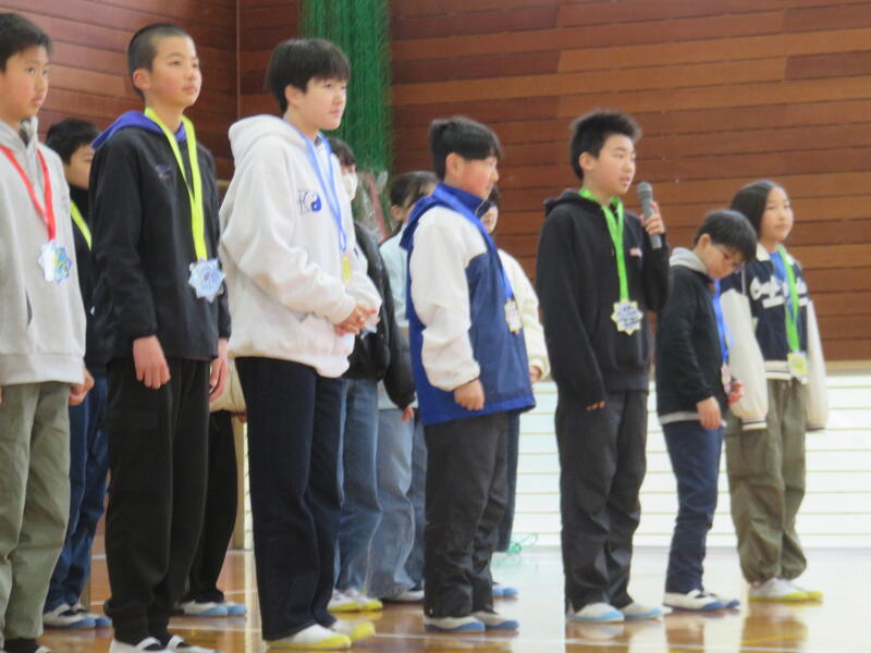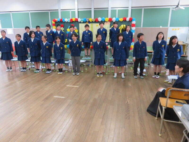 在校生代表として6年生が式に参加し、歓迎の言葉を伝えました。困ったときはたくさん頼って、遊ぶときはたくさん遊んで、交流を深めてほしいと思います。