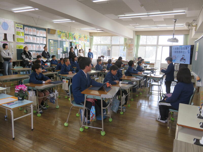 国語「今、私は、ぼくは」という単元で、自分の将来の夢について資料を使ってスピーチをする学習をしました。使う言葉や話し方、資料の見せ方を工夫し、上手なスピーチができました。
