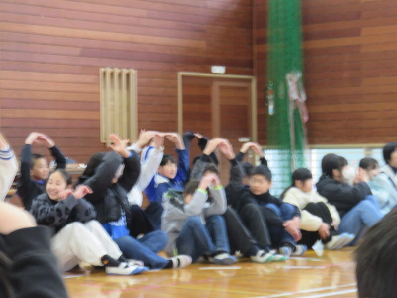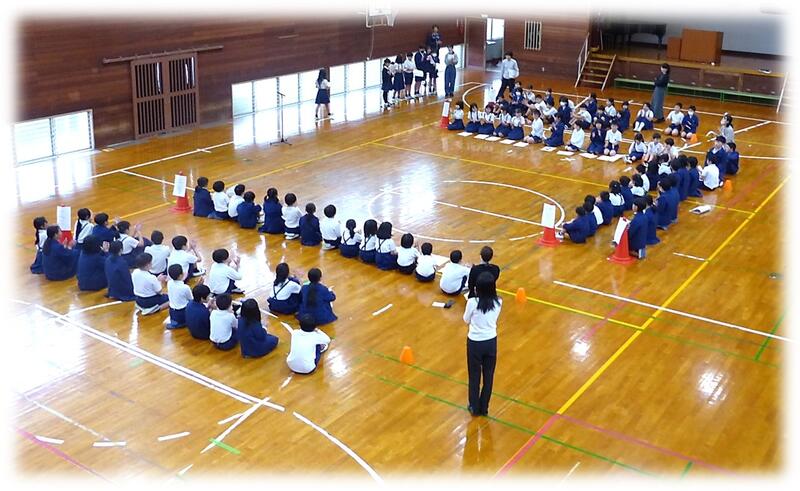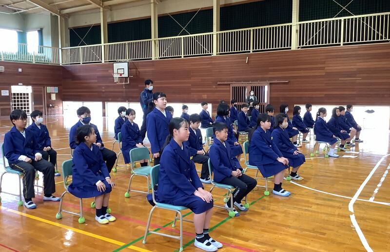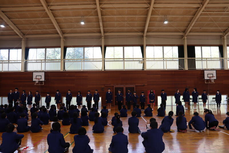 当初、運動場での実施の予定でしたが、雨天のため場所を体育館に移して行いました。