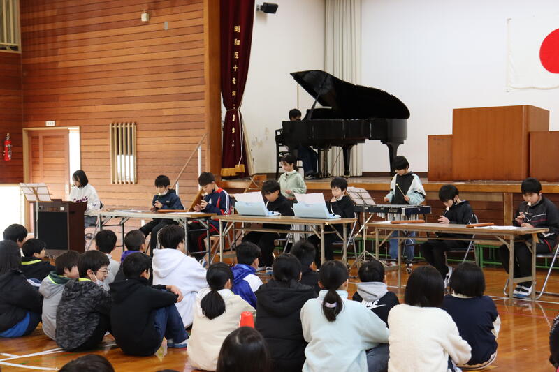 2年生からは感謝の言葉と太鼓の演奏です。最も少ない人数の学級ですが力強い演奏でお別れ会を盛り上げてくれました。