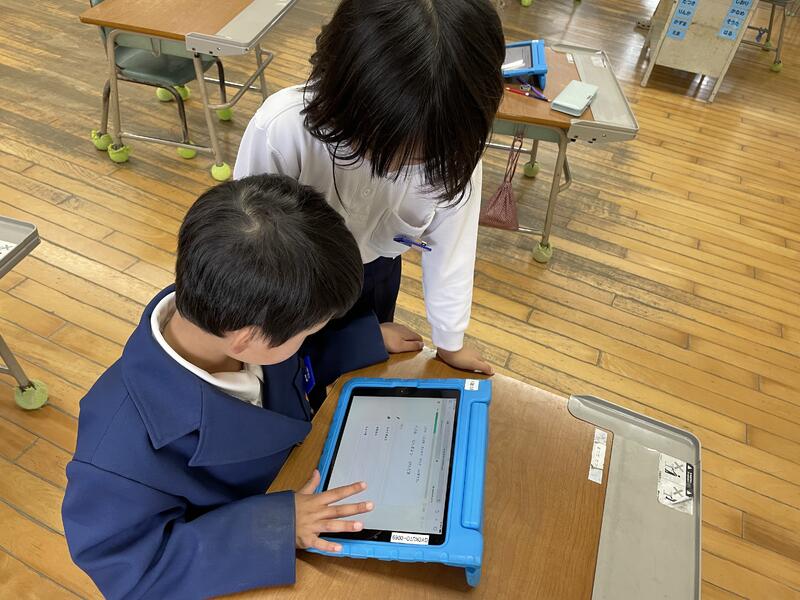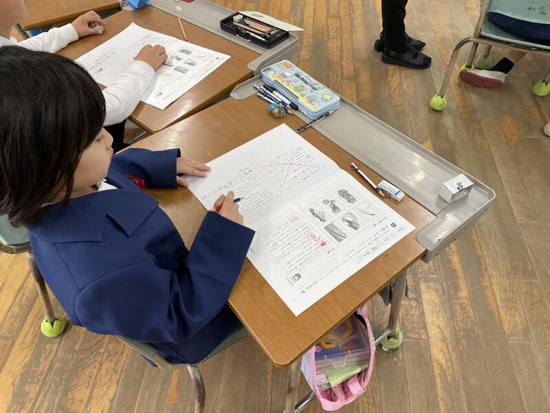 「ほめられたいから」「家族のために」「ずっとがんばりたいから」など、どうしてがんばるのか一生懸命考えていました。ペアで自分の意見を伝え合う姿がしっかりしており、1年生の成長を感じました。