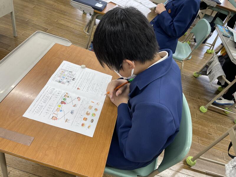 本時のねらいは「自分の興味にそって、大事な言葉や文を抜き出そう」です。一生懸命教科書から文章を抜き出しており、とても集中した様子でした。