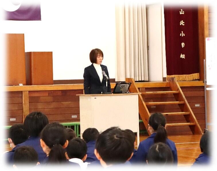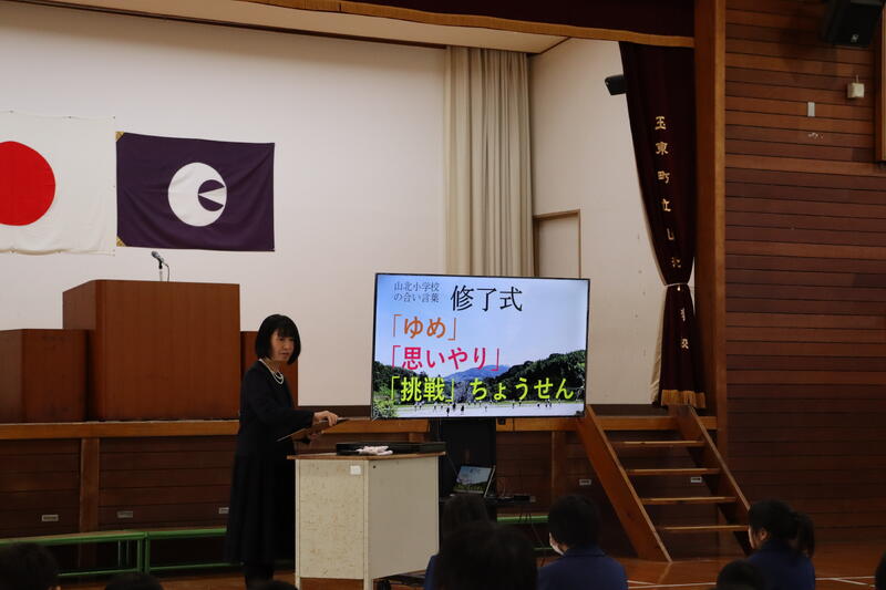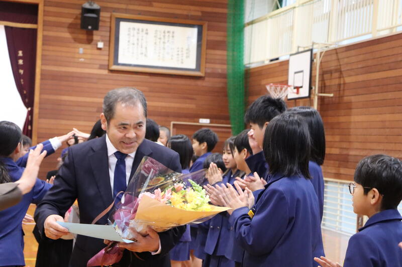 児童会代表を中心に感謝の言葉を伝えました。お世話になった先生方が山北小学校を去られるのはとても寂しいですが、新天地でも体調に気を付けて頑張ってほしいと思います。本当にお世話になりました。