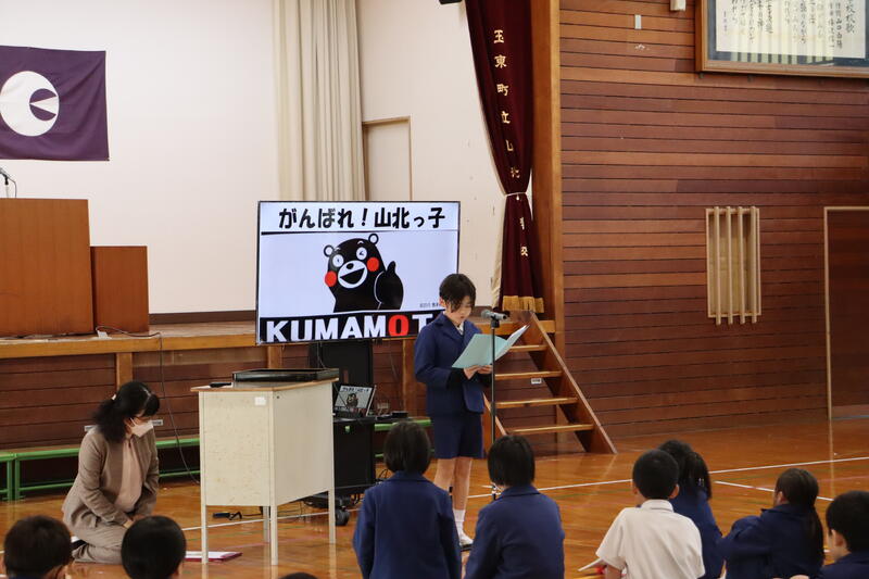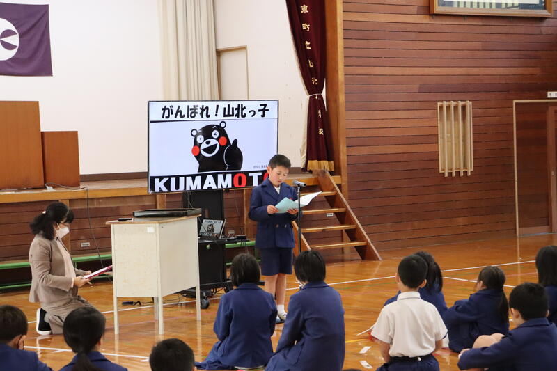最初に企画委員会が「山北っ子なかよしスローガン」の発表を行いました。