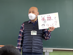 実際に見せてもらいながら、手話で自分の名前を紹介したり、挨拶したりと楽しく活動することができました。