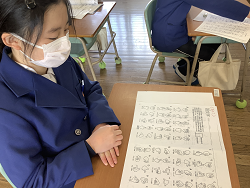 本時のねらいは「自分の興味にそって、大事な言葉や文を抜き出そう」です。一生懸命教科書から文章を抜き出しており、とても集中した様子でした。