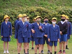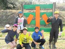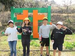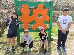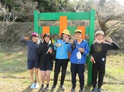 最後はみんなでハイチーズ!梅の花の白をバックに玉東カラーのオレンジと緑が映えています。6年生のみんな、学校のためにありがとう!