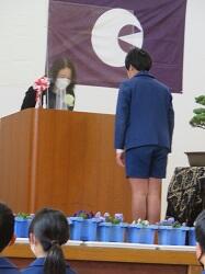 在校生代表である5年生も、背筋をぴっと伸ばし真剣な趣で式に参加していました。4月から学校を引っ張っていく意識の芽生えを感じました。