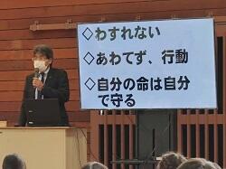 15日(金)に全校集会を行いました。今回のテーマは「防災」です。