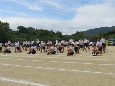 当初、運動場での実施の予定でしたが、雨天のため場所を体育館に移して行いました。