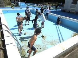 雨天や気温水温の低さが心配されましたが、はじめるころには雨も上がり、太陽も雲の隙間から顔をのぞかせるぐらいに天気も回復し、気持ちの良いプール開きとなりました。