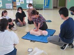 また、そのあとの心肺蘇生法は、低中高に分かれて行いました。