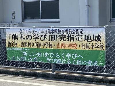 本校は、西原村内の他の2校とともに、今年度から来年度にかけて、熊本県教育委員会の「熊本の学び」の研究指定地域となり、子供たちの生きる力の育成に向けて研究に取り組むこととなりました。