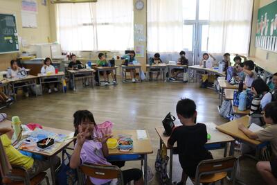 緊張している様子です。みんなが仲よく親切にして、早く学校になじんでくれればと思います。