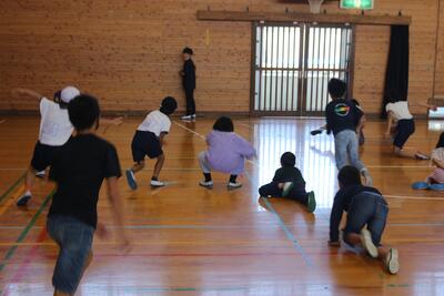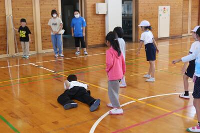 5時間目の時間に児童集会がありました。今年度はオンラインではなく、体育館に集まり行いました。