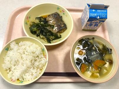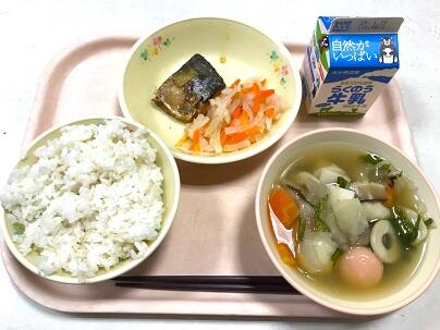 今日の献立は、麦ごはん、牛乳、さばのしょうが煮、なめこ汁、酢の物 です。