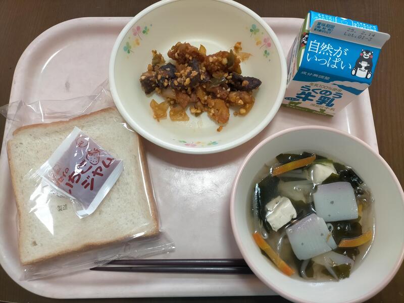 今日は「ふるさとくまさんデー」です。ふるさとくまさんデーでは熊本でとれる食材や、県内の各地で食べられている郷土料理を紹介しています。今日は阿蘇の味です。