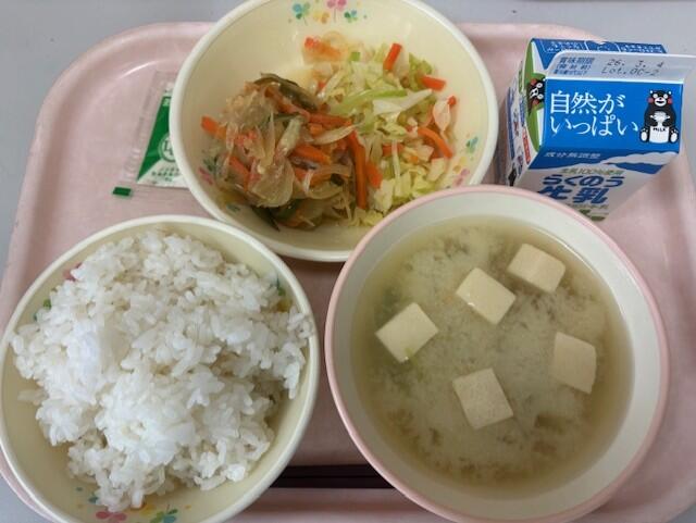 高野豆腐は、豆腐を凍らせて水分を抜き、乾燥させて作る保存食です。もともとは戦国時代の僧侶たちが、長期間保存できる食べ物として作ったのが始まりといわれています。高野豆腐はたんぱく質 やカルシウムを多く含み、体を作るのにとても大切な食べ物です。今日の給食では、やわらかく戻した高野豆腐を味噌汁に入れています。