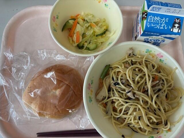 チーズパン、牛乳、ひじきスパゲッティ、コールスロー