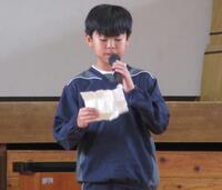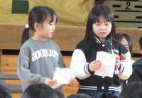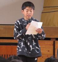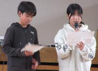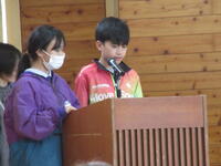 企画運営委員長からは、児童会スローガン「どりょく、チャレンジ、支え合い」の振り返りがありました。全校児童にアンケートをとった結果、ほとんどの児童が取り組むことができたという良い結果でした。