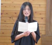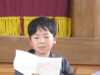 まず現1年生が、小学校生活を紹介してくれました。見学旅行のこと、運動会のこと、英語の時間のこと、給食当番のこと、掃除の時間のこと、幼稚園や保育園とはちょっと違う生活を紹介してくれました。
