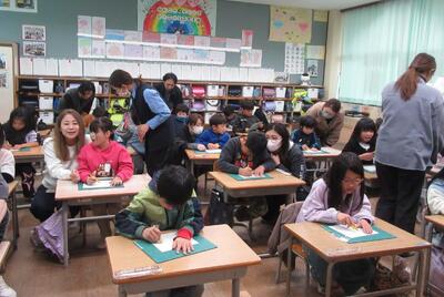 今年も、4月からたくさんの1年生が入学してきてくれます。今日は全員集まって、小学校生活の準備です。