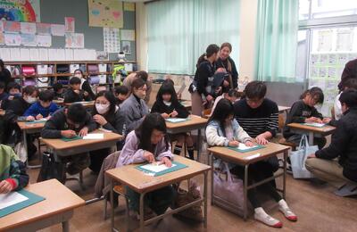今日は、今年度最後の授業参観日でした。どのクラスもたくさんのおうちの方が見に来てくださり、一生懸命発表するクラス、おうちの方と一緒に製作するクラス、グループ活動するクラス、どのクラスも笑顔がいっぱいでした。