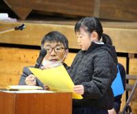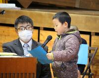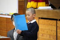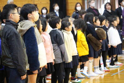 終業式の最初は、各学年の代表の、冬休みの思い出とがんばりたいことの発表です。