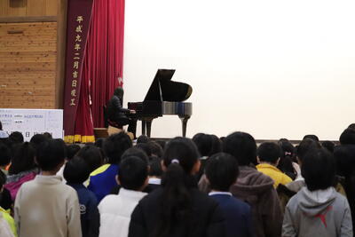 お昼休みに、放課後活動している音楽クラブが、ライブを行いました。SEKAI NO OWARIの曲やクリスマスにちなんだ「聖者の行進」など楽しい曲を聴かせてくれました。日頃近くで見ることのない楽器に、興味津々な子ども達でした。