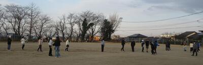 運動場では、駐在所の山下さんと交通安全協会のみなさんに、登下校時の正しい歩き方や、横断歩道の渡り方を指導していただきました。
