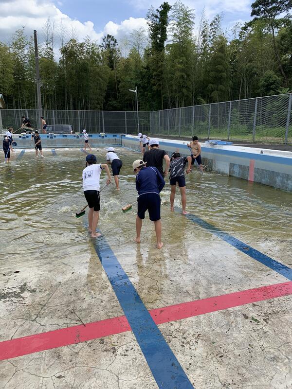 今年もプール掃除の時期がやってきました。1年間の汚れが溜まったプールを5、6年生が掃除していきました。6月のプール開きに向けて、暑い中、学校のために頑張ってくれました。泥やこけで汚れたプールがとてもきれいになりました。プールが楽しみですね(^▽^)