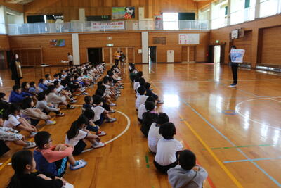 熊本地震発生日が間近になった4月12日(金)に、本校体育館で「防災教室」を開きました。
