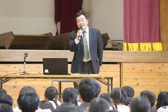 熊本地震発生当時、山西小の校長を務めておられた、西原村教育委員会の工藤 次生 先生を講師にお迎えしました。