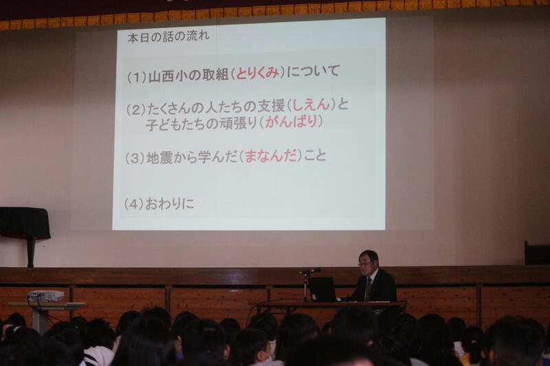 その当時の被災した様子や学校再開に向けて努力されたこと、いざという時のために私たちが備えておくべきことについてお話しになりました。