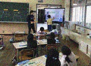 算数の授業では、電子黒板で説明したり、算数ブロックを使ったり・・