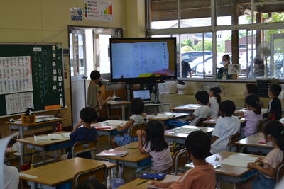 感染対策として、保護者の方には廊下からの参観をお願いしました。ただ、1年生と2年1組には廊下がないため、1・2年生のみ教室に入っていただいての参観です。そのかわり室内では話をしないようにお願いしました。いろいろと条件をつけての参観でしたが、保護者の方に御協力いただき、無事終えることができました。子供たちも、保護者の方が参観にみえられていつも以上に張り切って授業に臨んでいました。