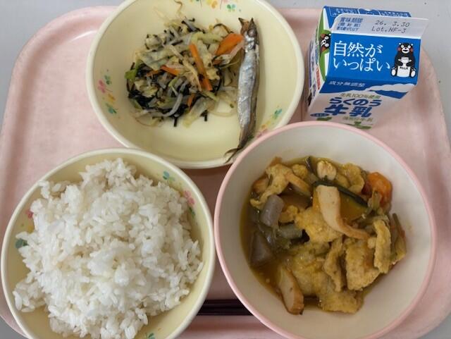 麦ご飯、牛乳、南関煮しめ、もやしの海苔あえ、ししゃも