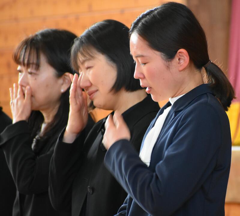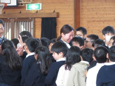 別れは、誰にとっても寂しいものです。先生達にも子ども達にも、たくさんの涙がありました。児童代表の感謝の言葉です。