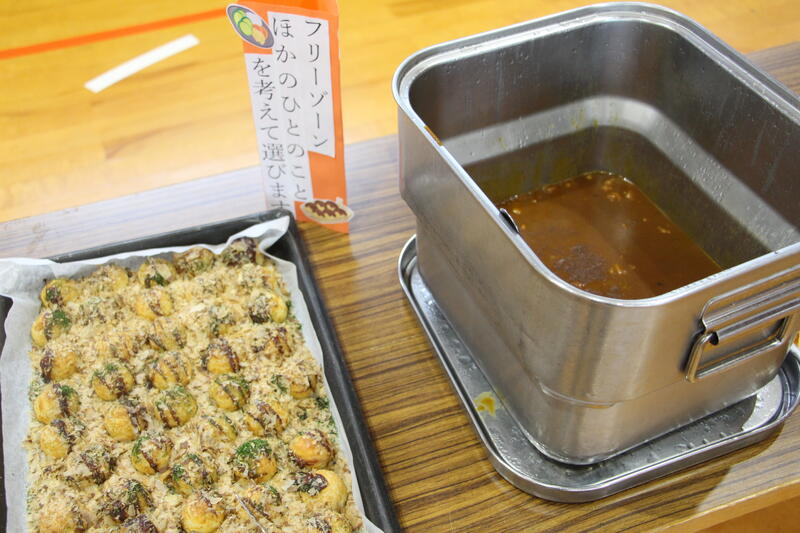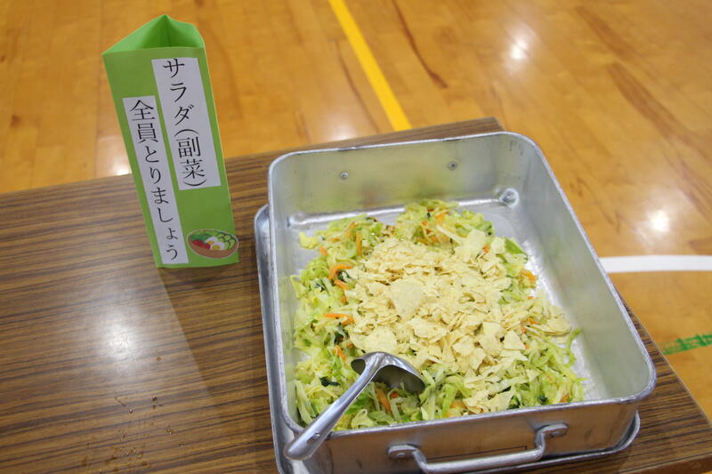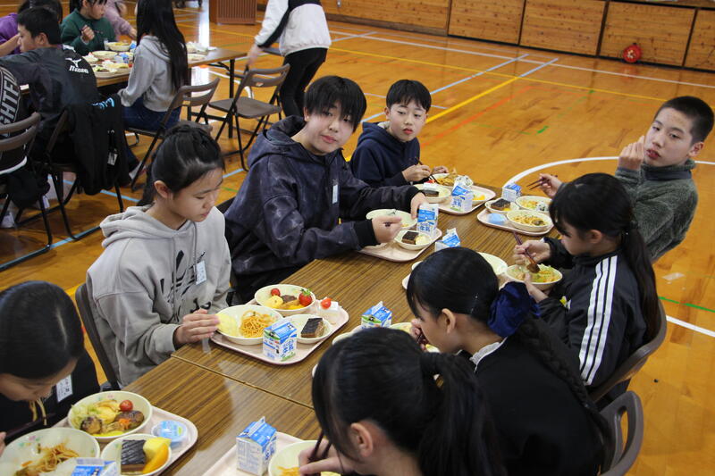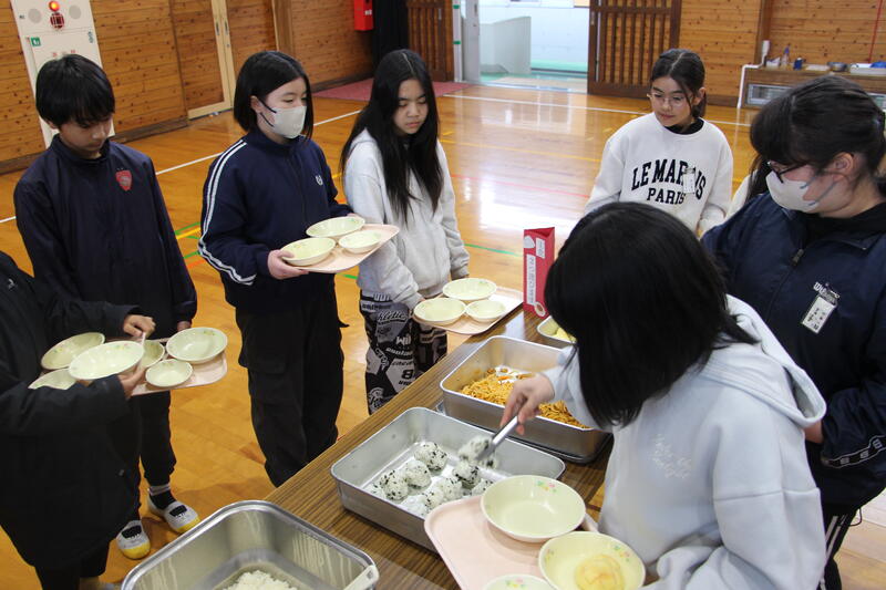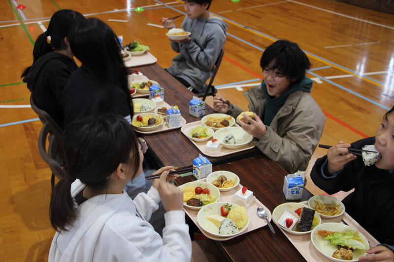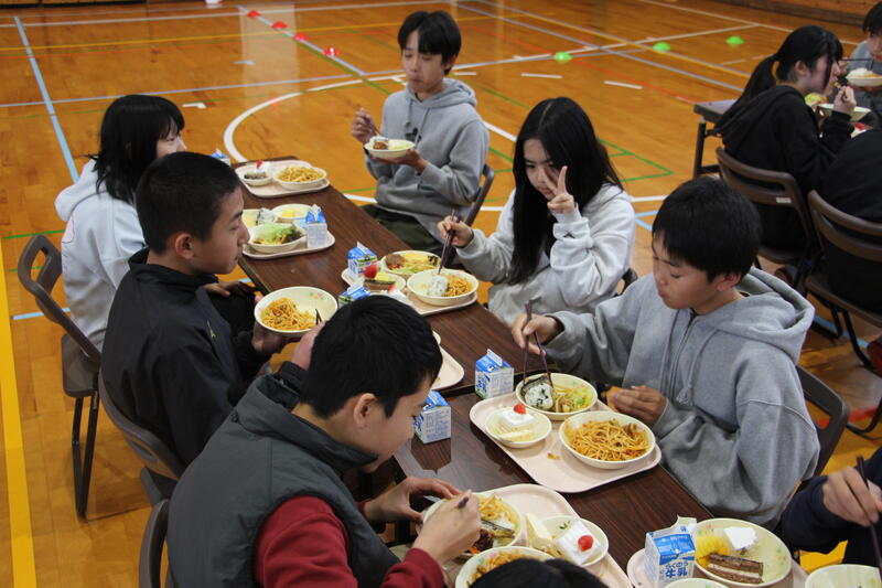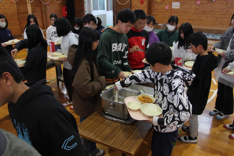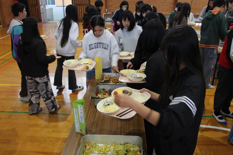 ナポリタンとご飯だけでお皿がいっぱいになっている人、いろんな食材をお皿の中いっぱいに取っている人・・・。個性が出ますね。でも、みんな楽しそうに食べていました。