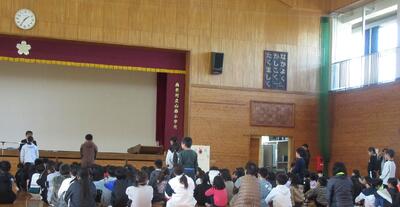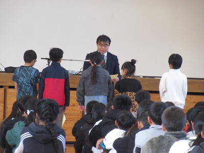 今日の児童集会は、最初にバトミントンや卓球で活躍した子ども達の表彰がありました。地域の社会体育で頑張っている子ども達です。