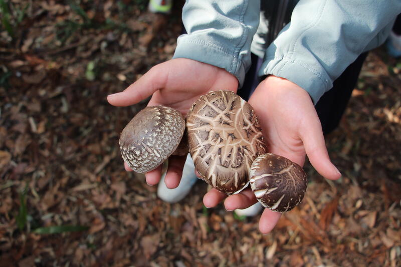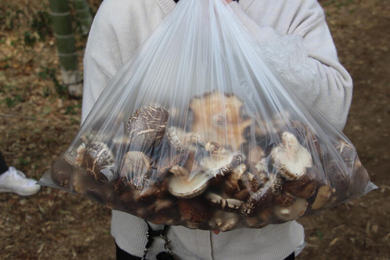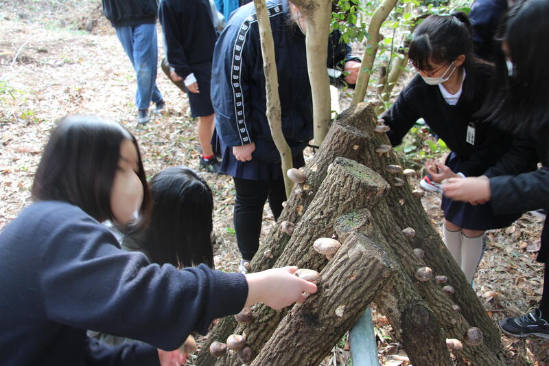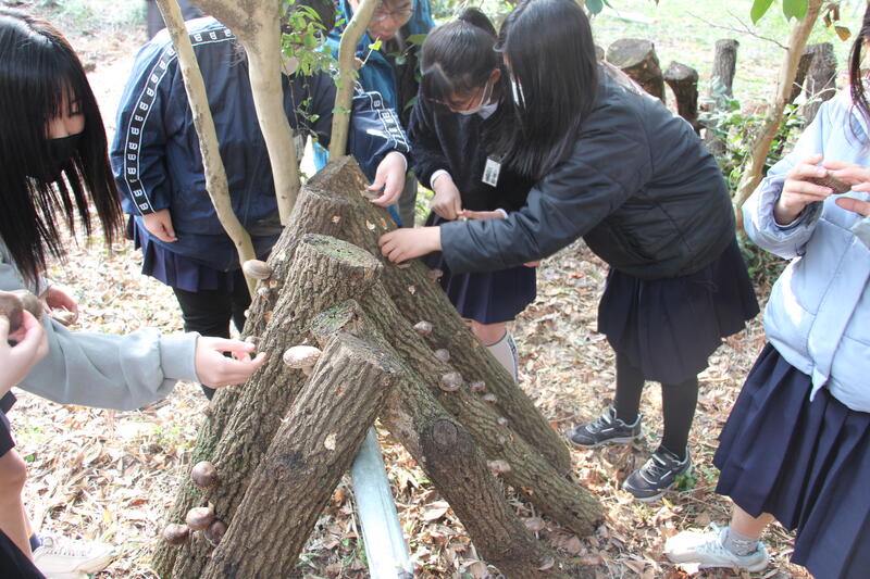 この椎茸は、6年生が3年生の時に菌打ち体験をしたものが、3年かけて収穫できるようになったものです。