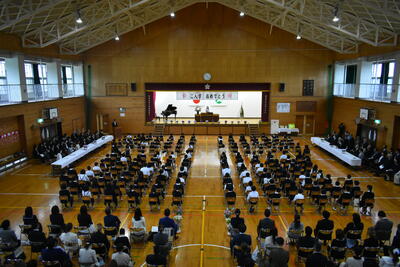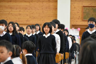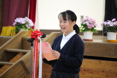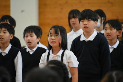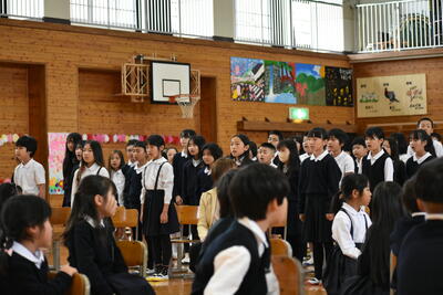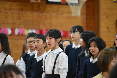 在校生を代表して、企画委員会委員長から歓迎の言葉と、5・6年生による歓迎の歌が贈られました。