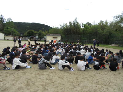 豪再教室と地震を想定した避難訓練を行いました。1年生にとっては入学後初めての避難訓練でしたが、避難訓練緊急放送が流れると、慌てることなく机の下にもぐり、頭を守る姿勢をとることができました。