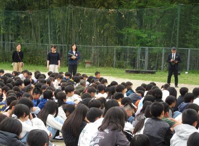 そのあと体育館に移動し、発災当時、役場職員として対応された教育委員会の倉田さんによる講話を聴きました。
