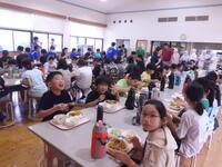 昼食は河原小学校のランチルームで給食(カツカレー)をいただき、お代わりもいっぱいしました。