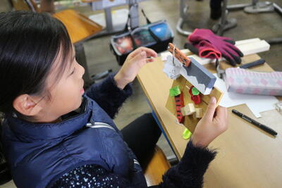 4年1組は図工の「ぎこぎことんとんクリエイター」で制作を