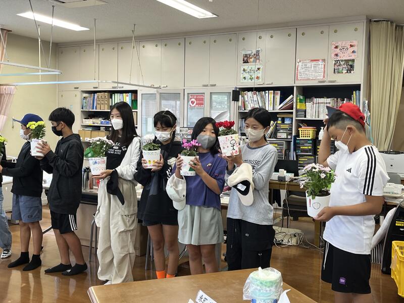 メッセージを添えた植木鉢を、のぎく荘を利用されている方々にお渡ししました。