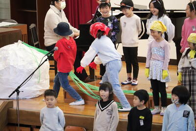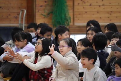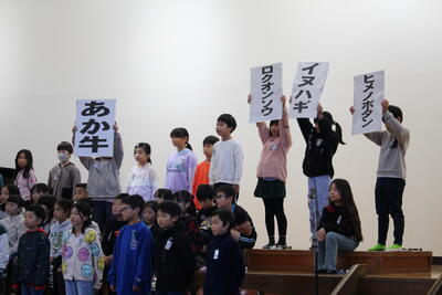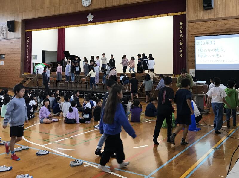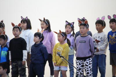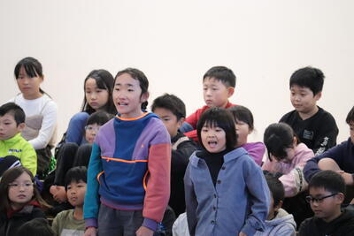 低学年は音楽劇を元気いっぱい、山西小流のアレンジを加えて楽しく発表してくれました。